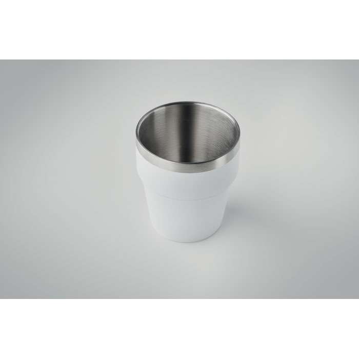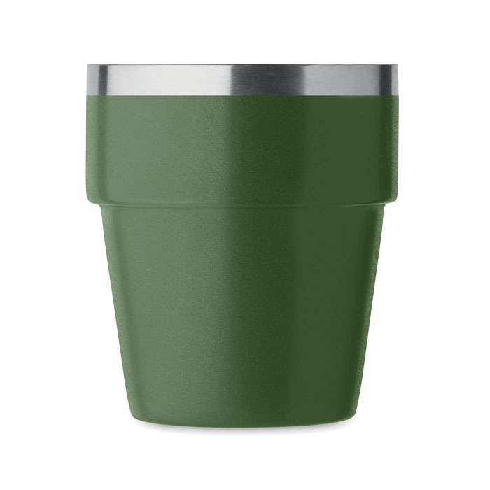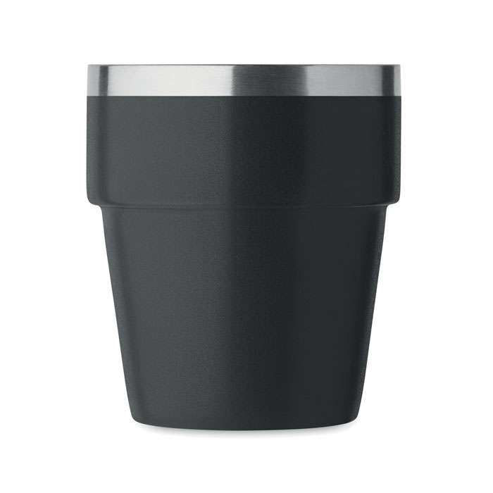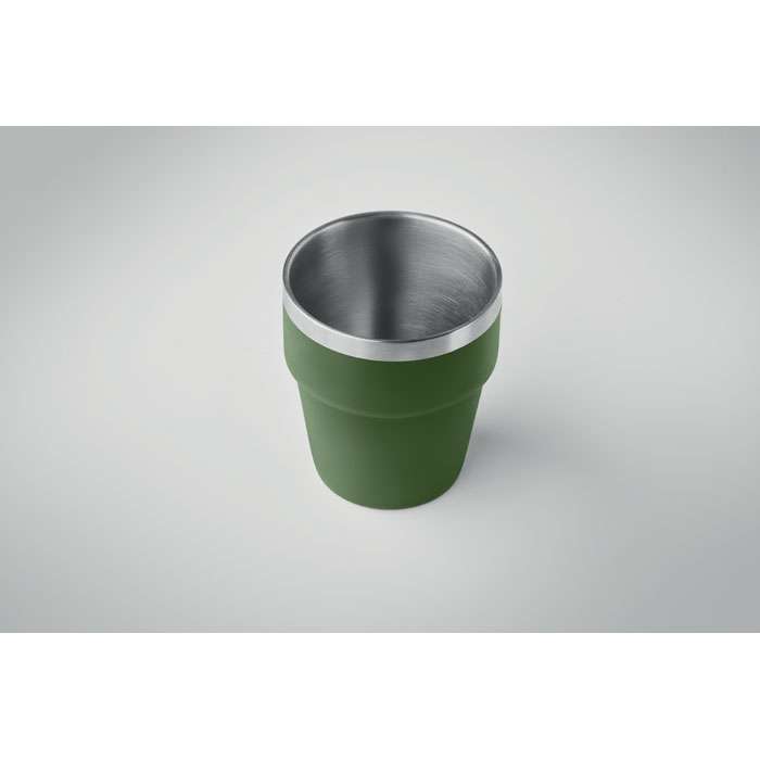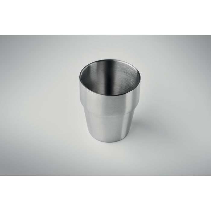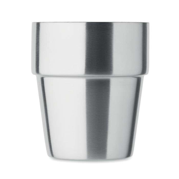 Mugg med dubbelvägg i återvunnet rostfritt (90% återvunnet rostfritt stål och 10% rostfritt stål) Stapelbar. Volym: 250 ml.