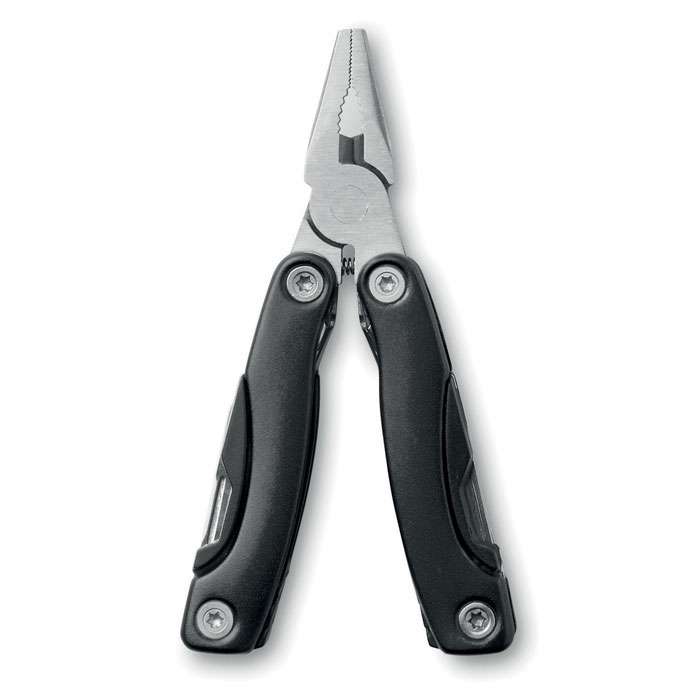 Multiverktyg i rostfritt stål med tång. 9 verktygsfunktioner. 600D polyesterpåse ingår.