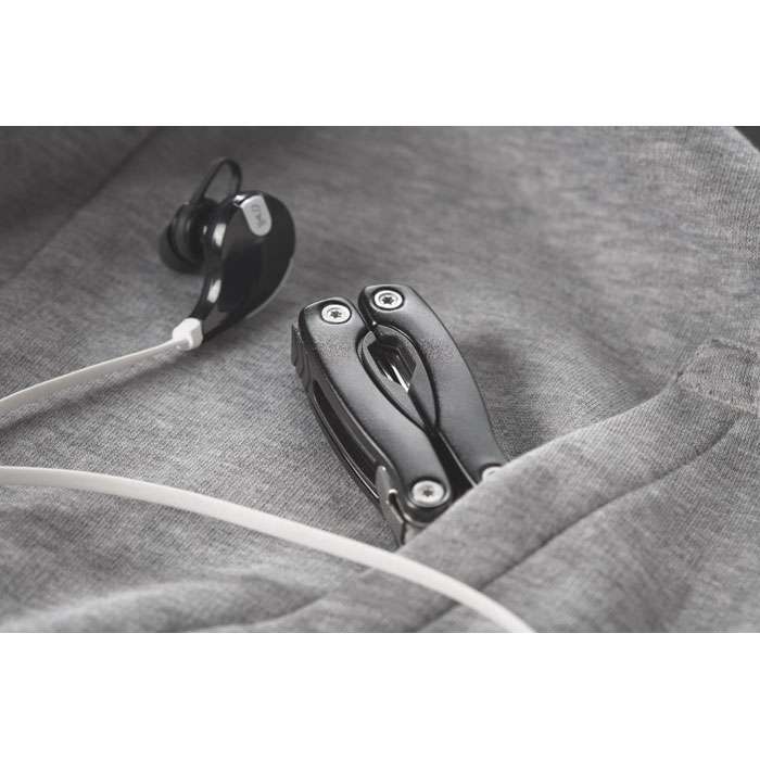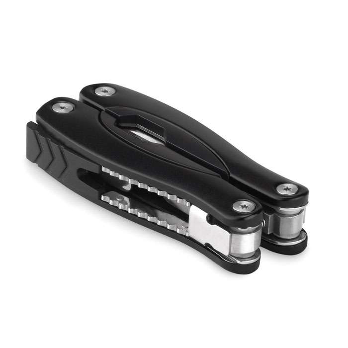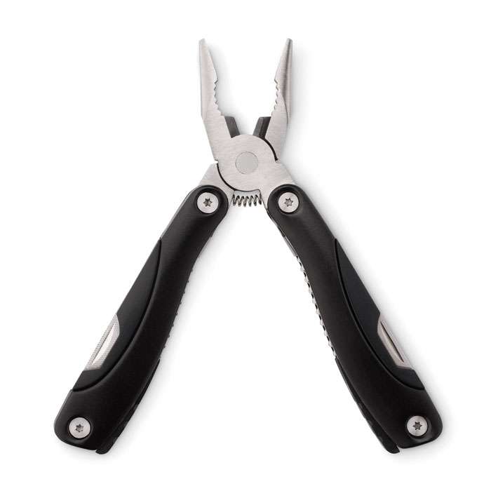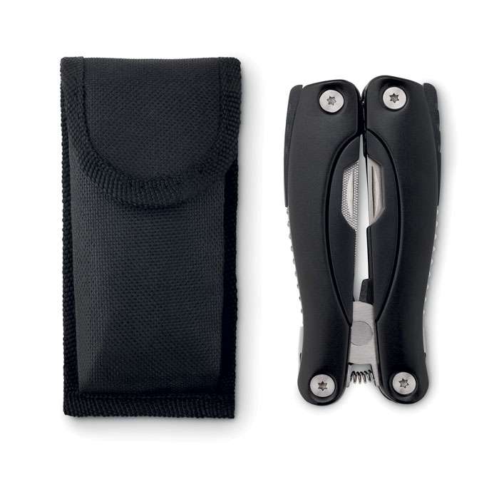 Multiverktyg i rostfritt stål. 9 st olika funktioner/verktyg. Pouch i 600D polyester.