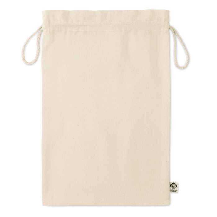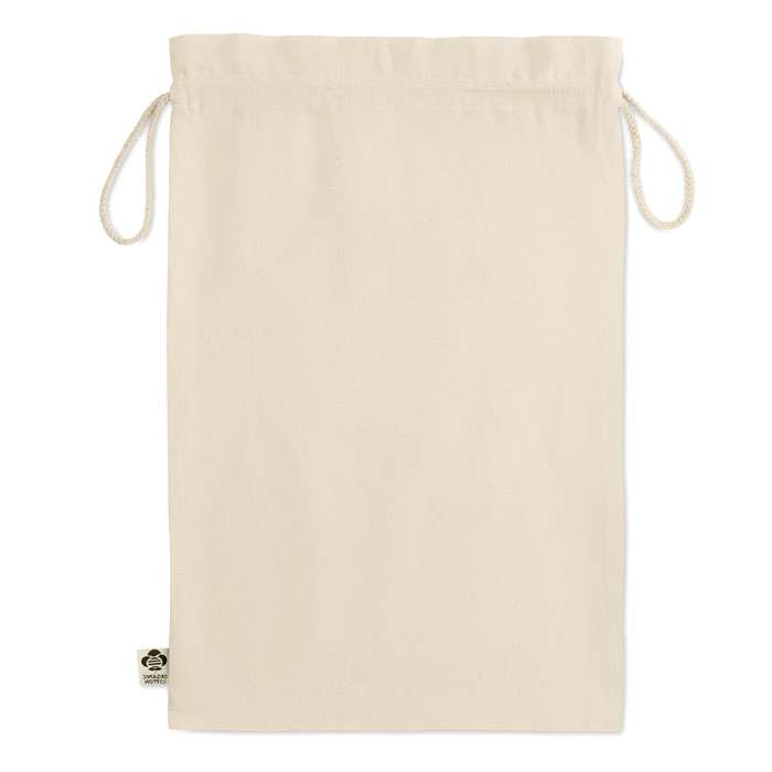 Stor presentpåse med dragsko i ekologisk bomull. Storlek ca 30 x 47 cm. 105 gr/m².