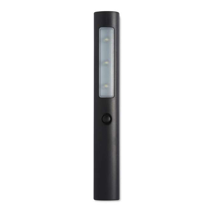 Emergency ficklampa med 3 LED lampor och magnet på baksidan. Lampan ger både fast och blinkande sken och kan fästas på bilen vid ett nödstopp för att påkalla uppmärksamhet. 4 st AG3 batterier ingår.