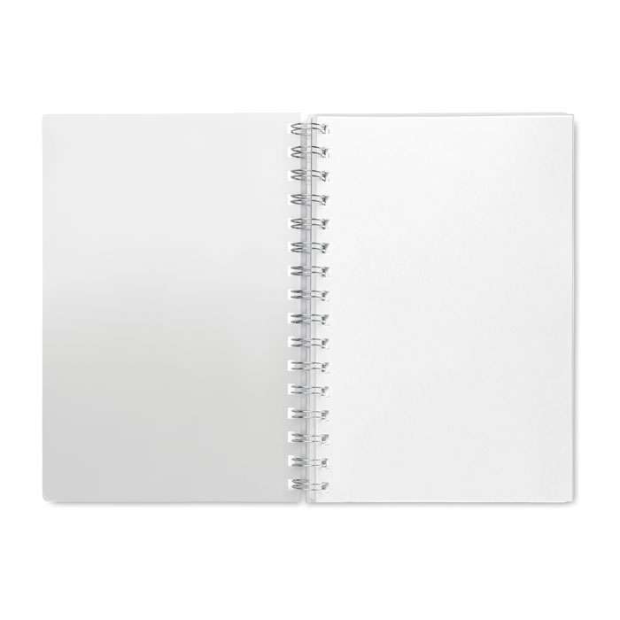 A5 anteckningsbok med RPET-omslag och 80 linjerade papperssidor.