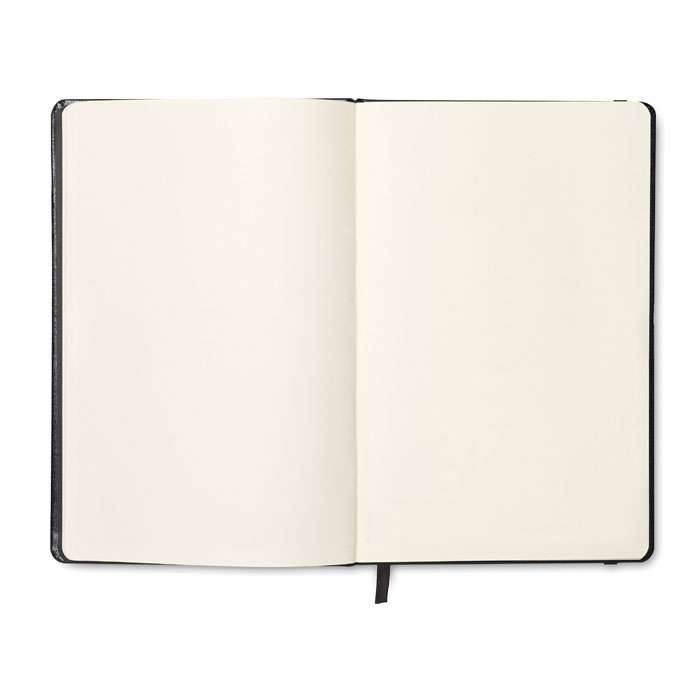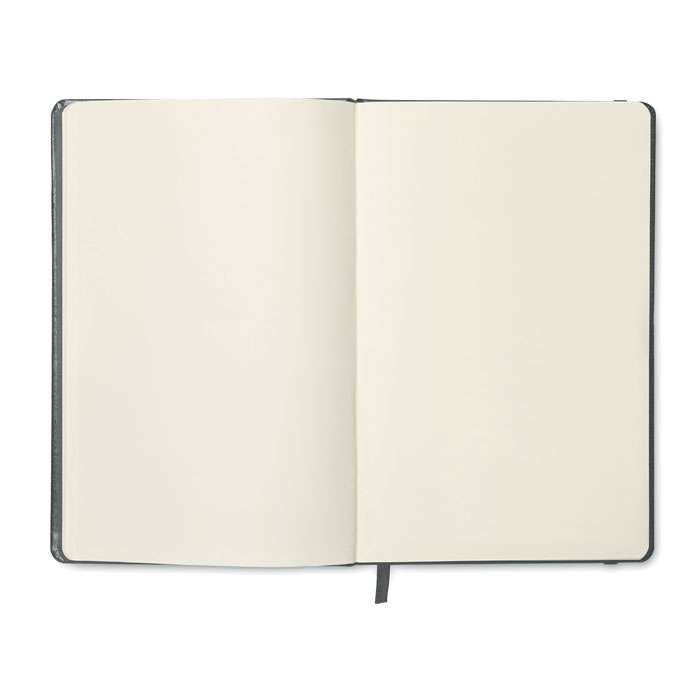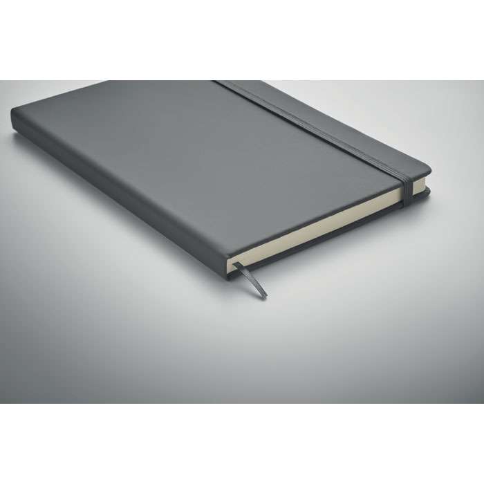 A5 anteckningsbok (hård pärm) med mjukt PU omslag som ger en gummerad känsla. 96 blanka blad stängt med ett gummiband. FSC®-certified | FSC MIX CREDIT, P7.1, FSC-C213206