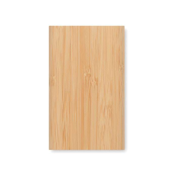 Power bank 4000 mAh kapacitet i bambuhölje. Utgångsström DC5V/2A. Inkluderar indikeringslampa och USB-kabel med typ C-kontakt. In/utgång: Typ-C
