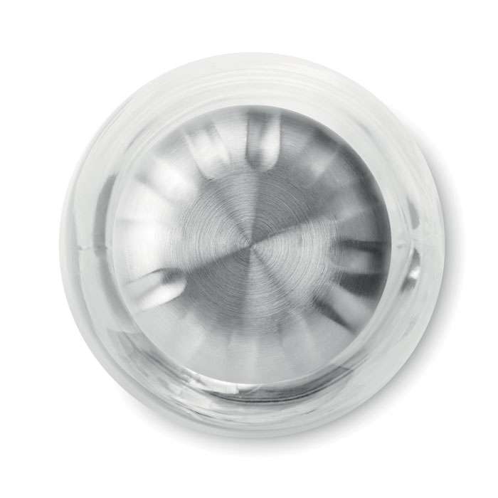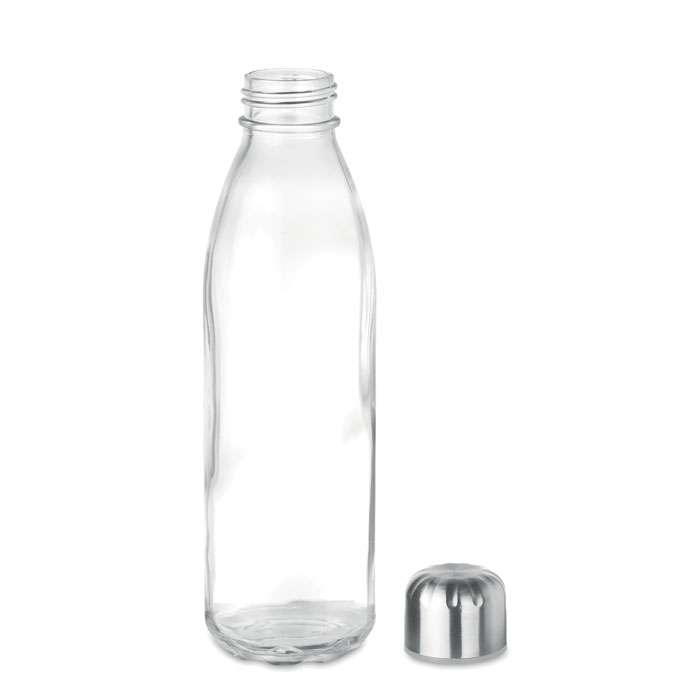 Drickflaska i glas med lock av rostfritt stål. Kapacitet: 650 ml. Läckagefritt.