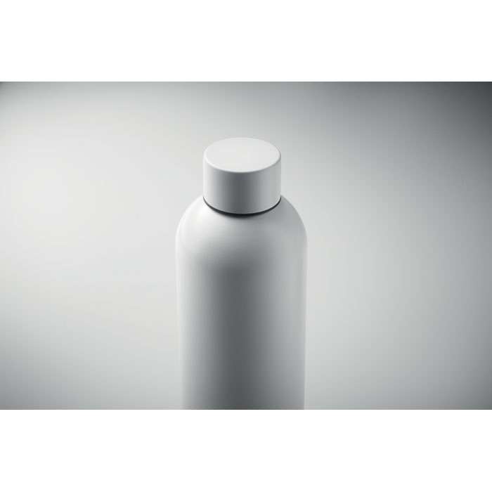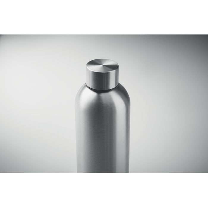 Flaska med enkel vägg av återvunnet rostfritt stål (90% återvunnet rostfritt stål och 10% rostfritt stål). Läckagefri. Volym 750 ml. Silikongreppet ger dig ett bra grepp och skyddar dina händer från att bränna sig.
