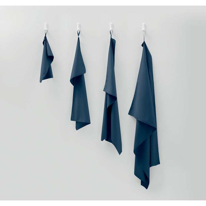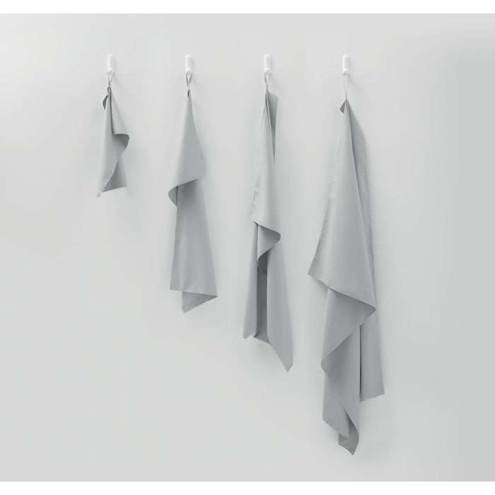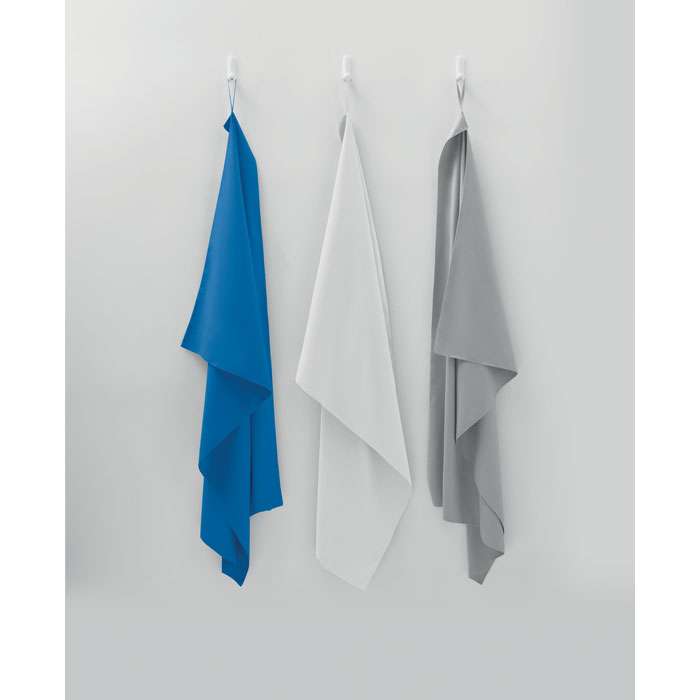 Mikrofiberhandduk av 90% polyester och 10% polyamid med elastisk upphängningsögla. Lätt och snabbtorkande. Mått: 70x140cm