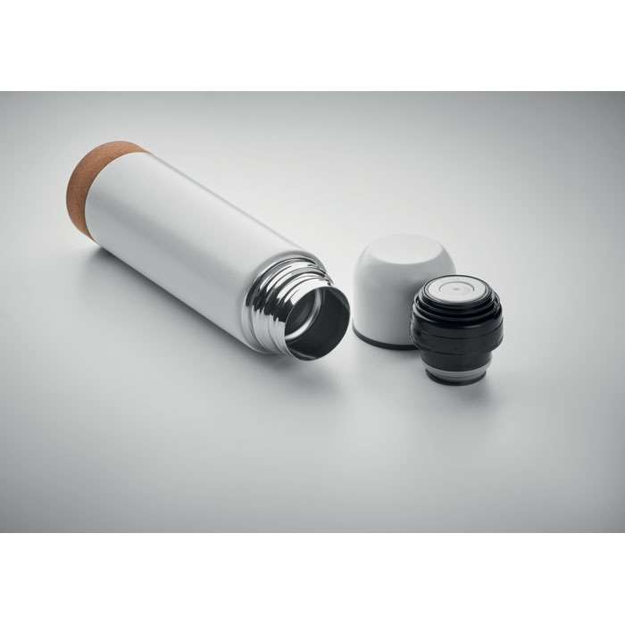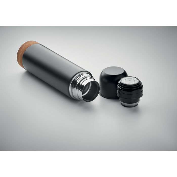 Dubbelväggig vakuumisolerad kolv i återvunnet rostfritt stål med botten av korkdetaljer. Läckagefri. Kapacitet: 500 ml. (90% återvunnet rostfritt stål och 10% rostfritt stål).