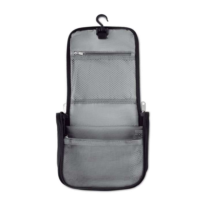 Hängbar toalettväska med multipla fack och nätfickor i hög densitets polyester. En necessär som är Idealisk för resan.