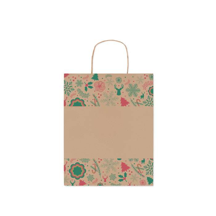 Medium julpapperspåse för medelstora gåvor (50 % återvunnen). 90 gr/m². Tillverkad i EU.