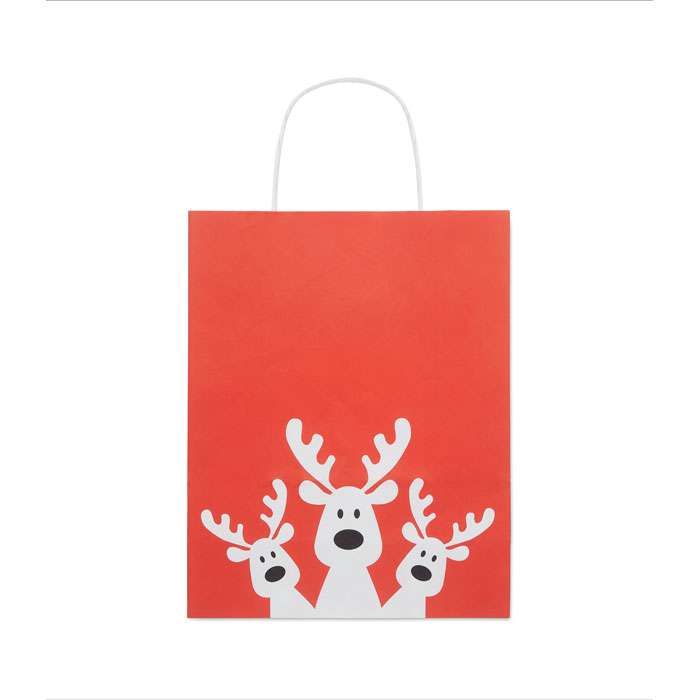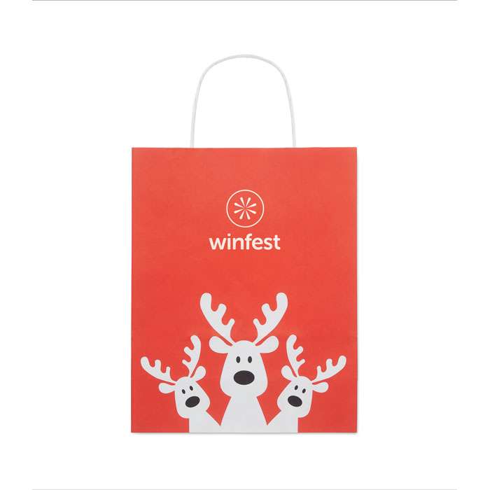 Liten julklappspåse av papper (50% återvunnet papper). 90 gr/m². Tillverkad i EU.