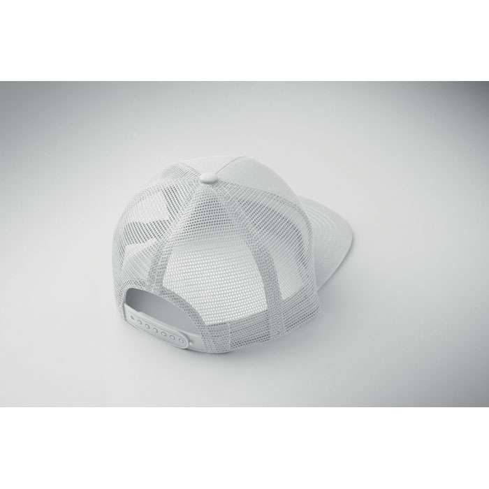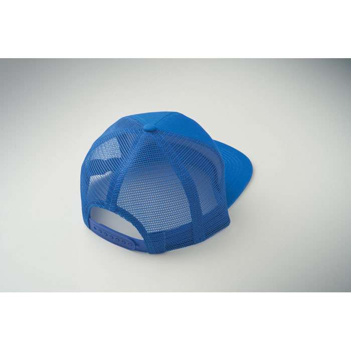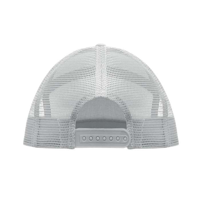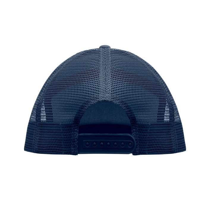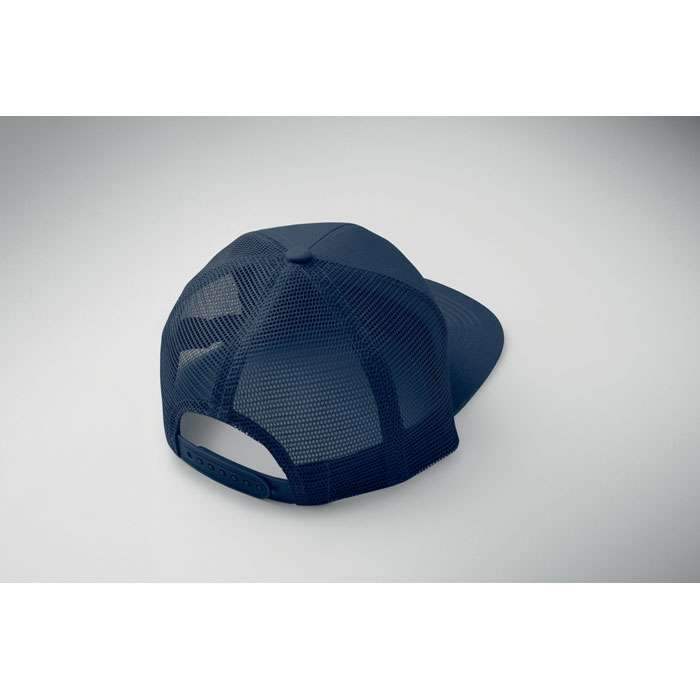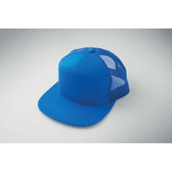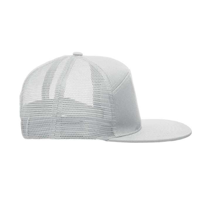 7 panelers keps i bomullstwill med baksida i polyestermesh och plastspänne. Platt skärm. 235gsm