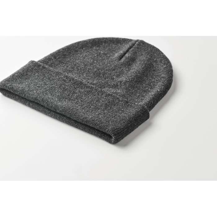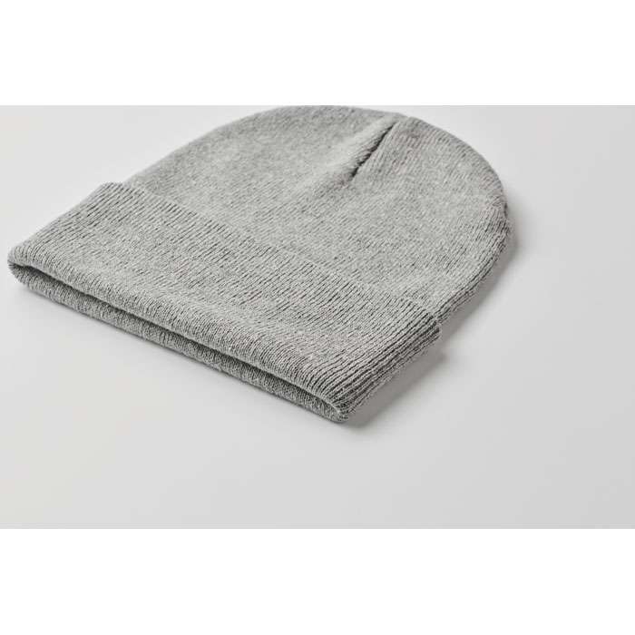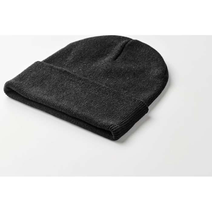 Unisex stickad mössa i mjuk, stretchig polyester (64%) och akryl (36%) med upprullad mudd. En stretchig one-size-fits-all design.