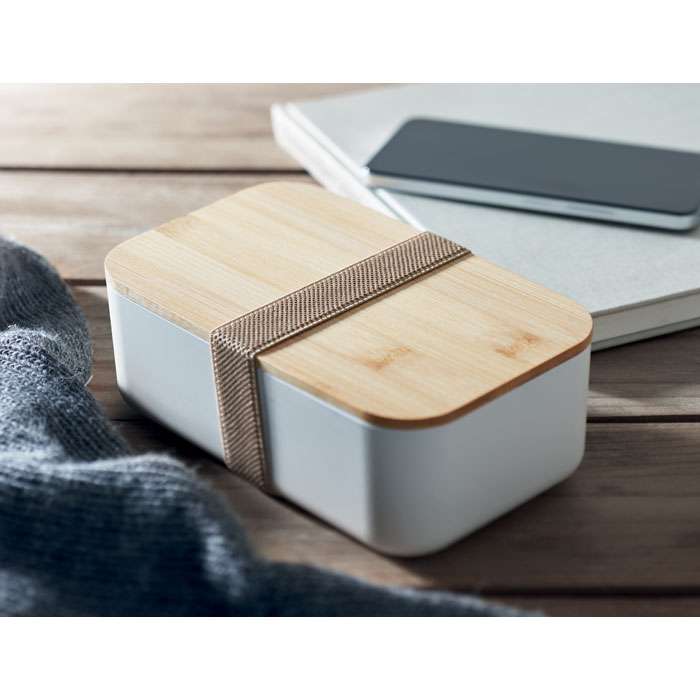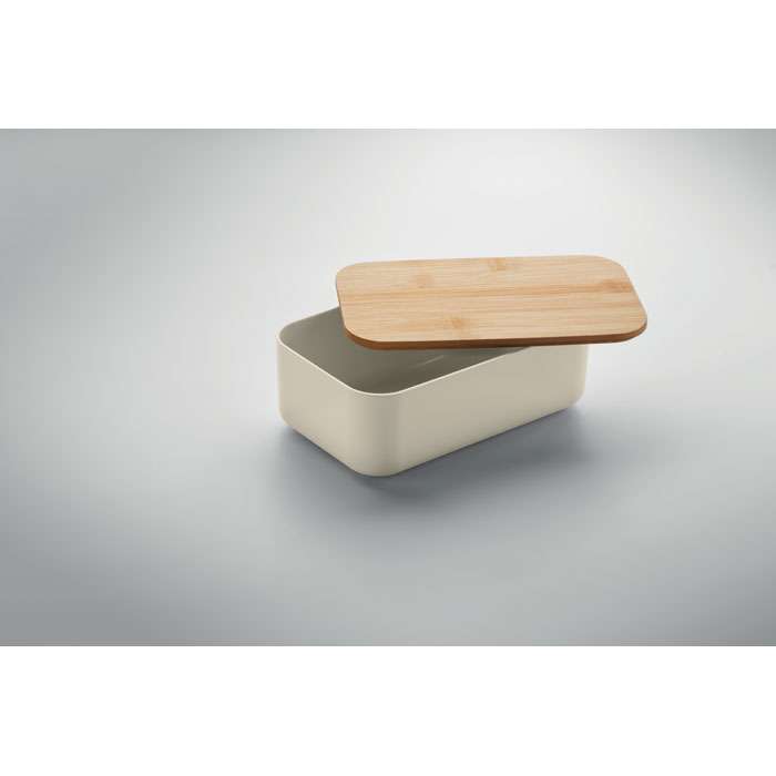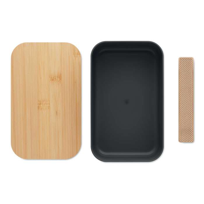 Matlåda av PLA-majs med lock av bambu och med elastiskt band. Volym: 1000 ml.