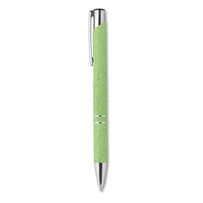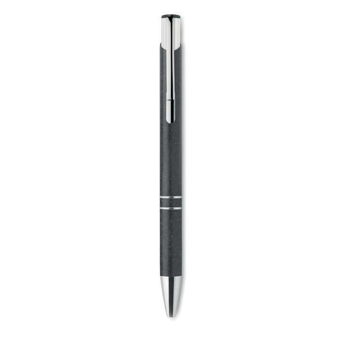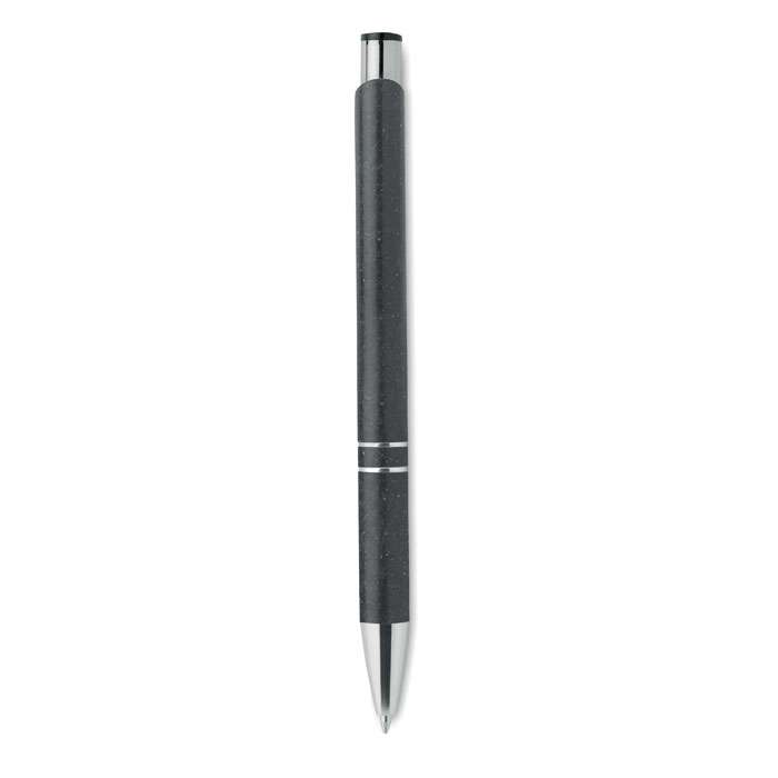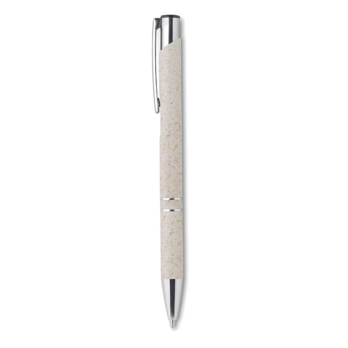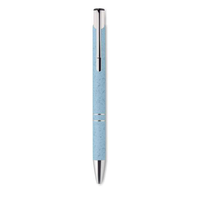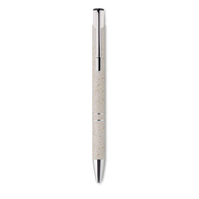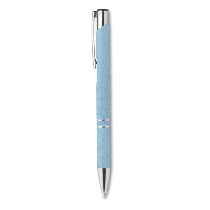 Kulspetspenna tillverkad av 50% vetehalm och 50% ABS plast med silverfärgade detaljer. Inblandningen av vetehalm i plastmaterialet reducerar plaståtgången till hälften. Blått bläck.