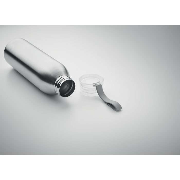 Enkelväggig flaska i rostfritt stål med PP-lock och silikonhängare. Kapacitet: 650 ml. Silikongreppet ger dig ett bra grepp och skyddar dina händer från att bränna sig.