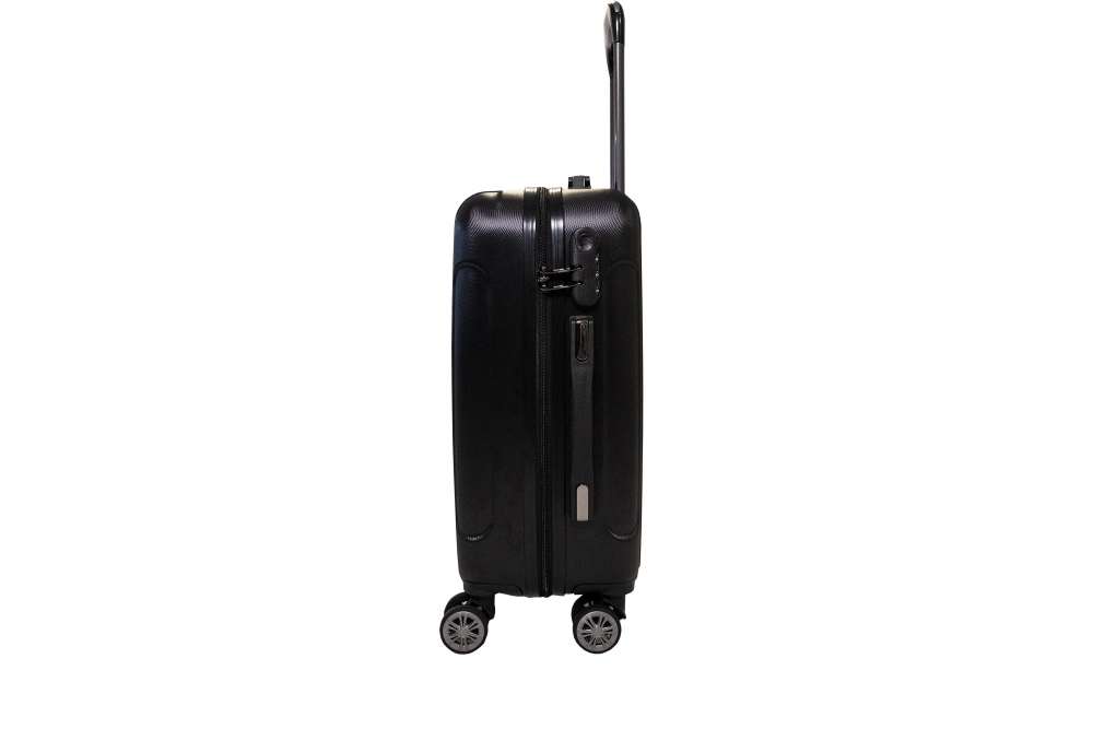 Tillverkad av slitstark ABS-plast. Låg vikt. Inredningen består av mellanskiva och packband. Fyra dubbelhjul. Justerbart teleskophandtag. Godkänt kombinationslås.