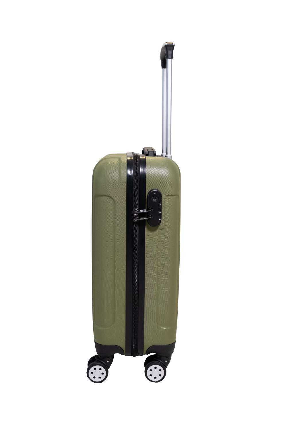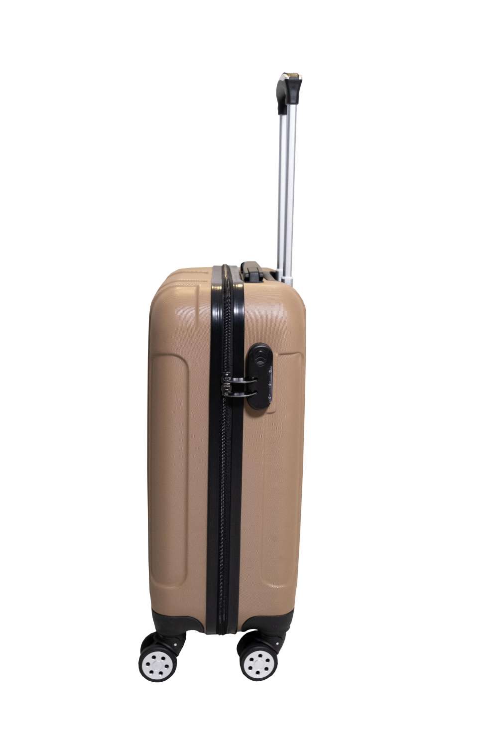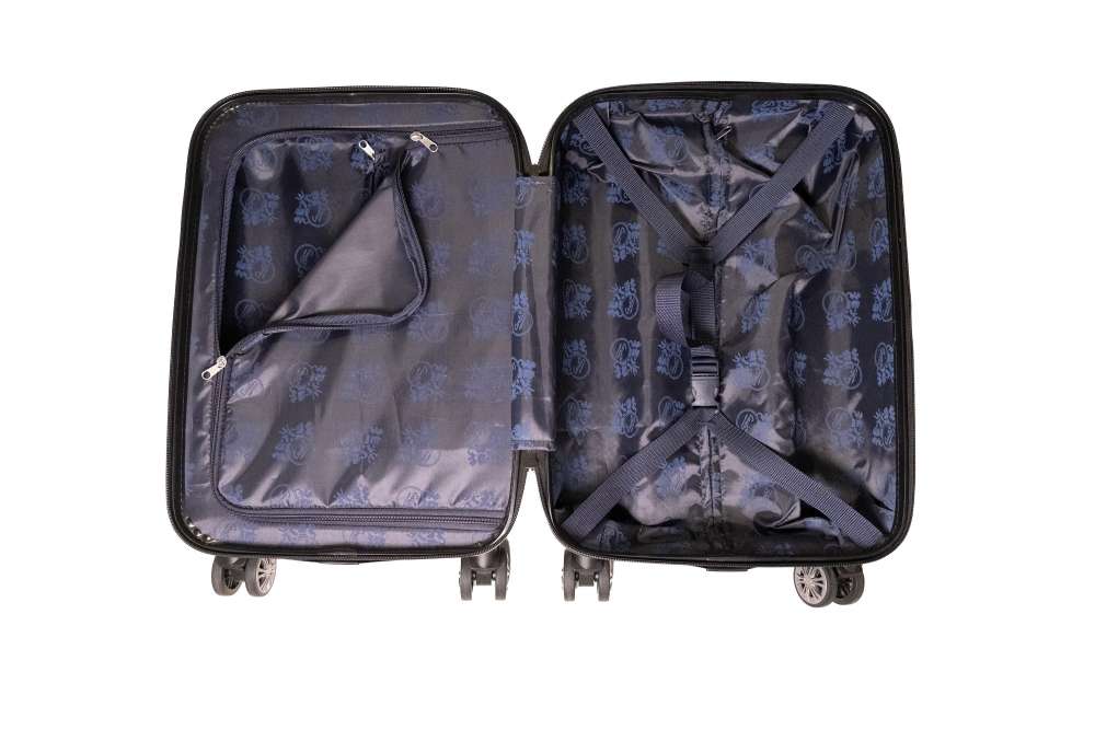 Tillverkad av slitstark ABS-plast. Låg vikt. Inredningen består av mellanskiva och packband. Fyra dubbelhjul. Justerbart teleskophandtag. Godkänt kombinationslås.