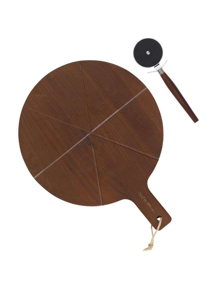 Denna skärbräda i vacker akacia har praktiska markeringar för perfekta slicar och kommer med en matchande skärare. Ett robust set som kombinerar både funktionalitet och stil, vilket gör pizzabakningen hemma både effektiv och njutbar.