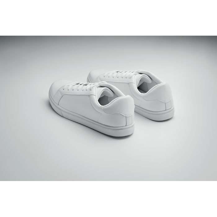 Sneakers i PU med yttersula i gummi och snören i polyester. Storlek: 43. Kommer i vit skokartong.