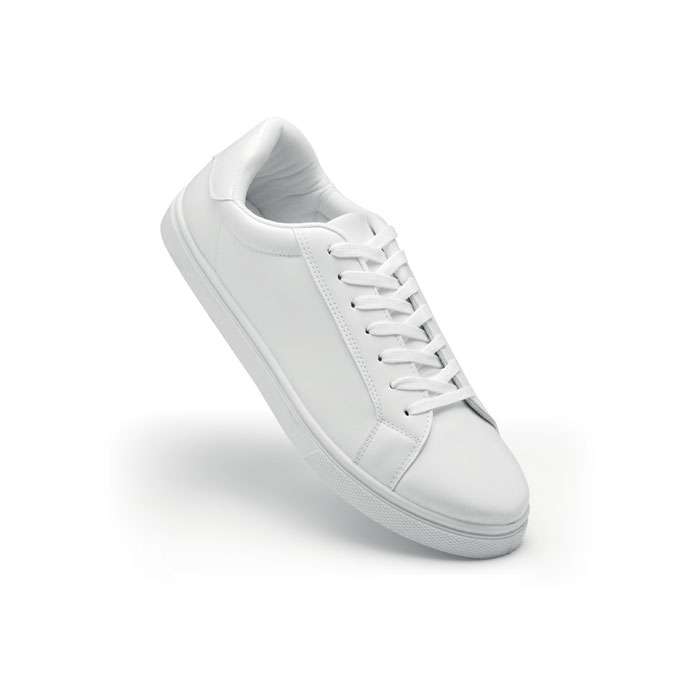 Sneakers i PU med yttersula i gummi och snören i polyester. Storlek: 44. Kommer i vit skokartong.