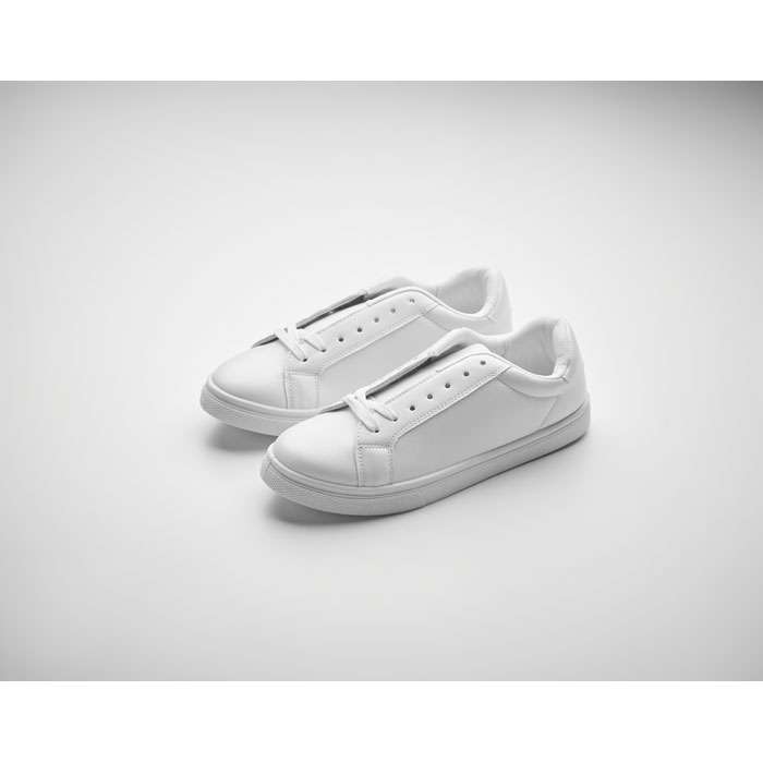 Sneakers i PU med yttersula i gummi och snören i polyester. Storlek: 40. Kommer i vit skokartong.
