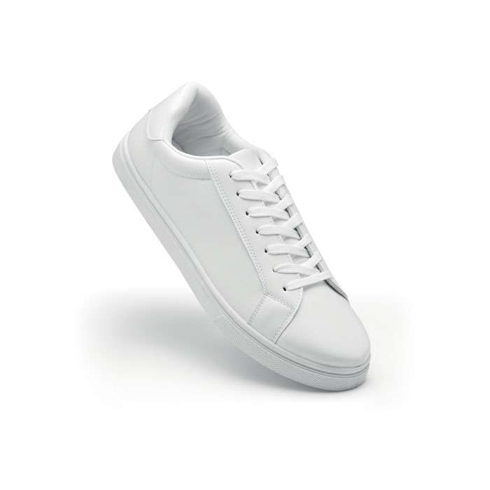 Sneakers i PU med yttersula i gummi och snören i polyester. Storlek: 41. Kommer i vit skokartong.