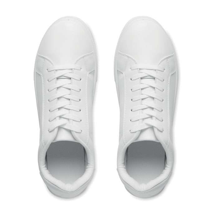 Lätta sneakers i PU med yttersula i gummi och snörning i polyester. Storlek: 47. Presenteras i vit skokartong. Sneakersen levereras med snören som endast träs i de 2 första öljetterna.