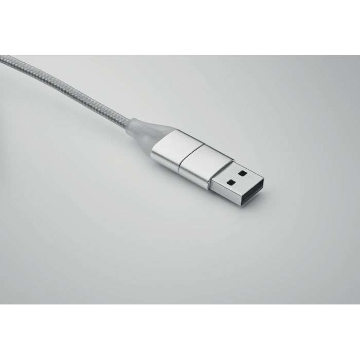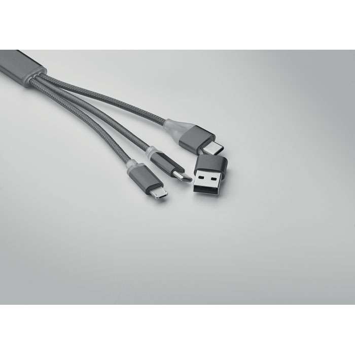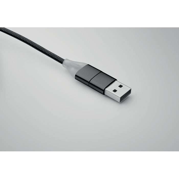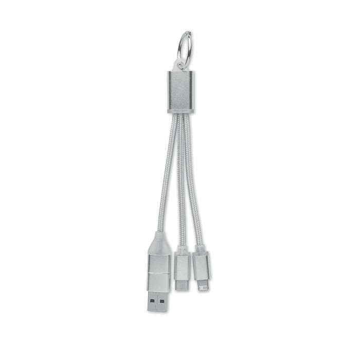 Nyckelring med laddningskabel med ingång: 2-i-1 typ-C & typ-A och mikro-B (2 i 1 stift) och typ C-utgång.