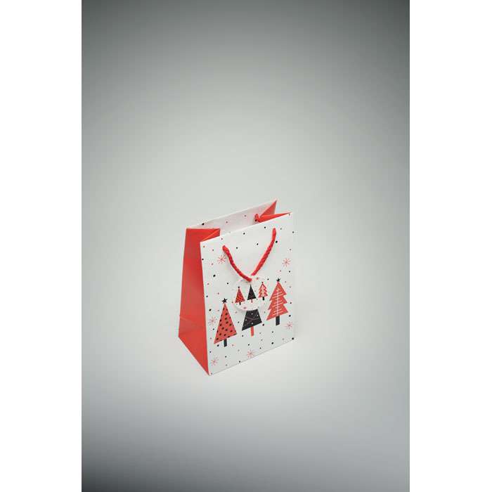Julig liten presentpapperspåse (30% återvunnen) med medföljande etikett. 128 gr/m². FSC®-certified | FSC MIX, W5.3, FSC-C213206