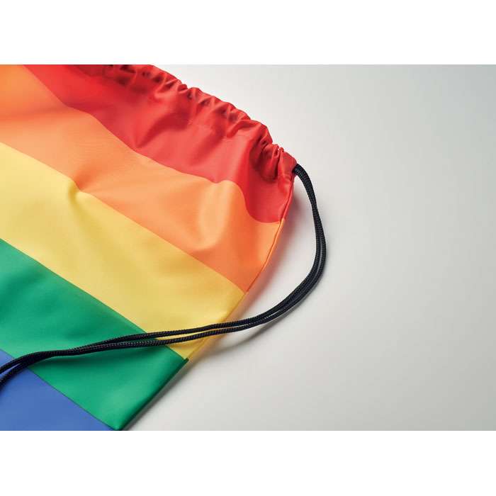 Regnbågsfärgad Pride Gymnastikpåse i 210D RPET polyester med PP-snören.