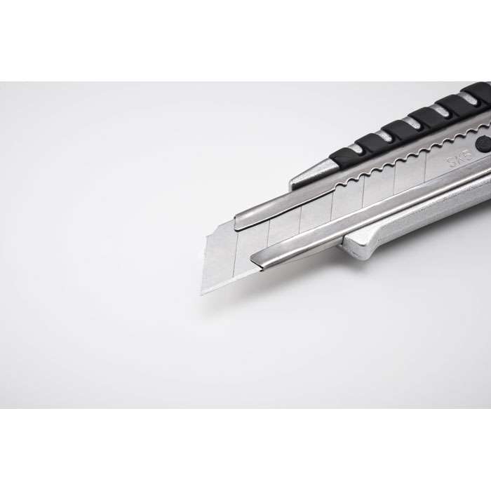 Brytkniv/packkniv i aluminium med 8st extra blad i kolstål.