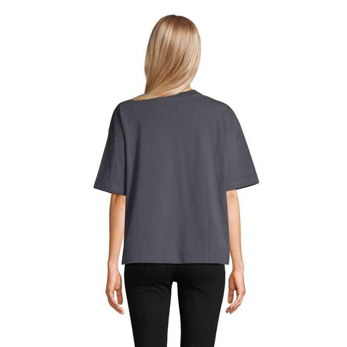 SOL’S BOXY WOMEN, oversized t-shirt för kvinnor, 100% kammad ekologisk bomull – i conversion jersey 180, rund hals, halsband, skuren och sydd, avtagbara ärmar. För matchande storlekar, se storlekstabellen i avsnittet om produktdokumentation.