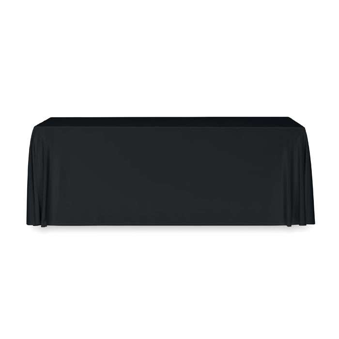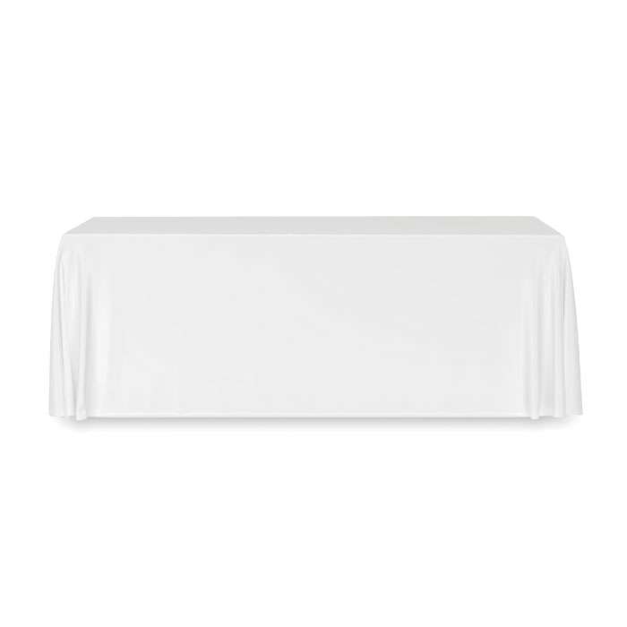 Stor rektangulär bordsduk i 180 gr/m² polyester. Bordsduk för företagspresentationer, mässor, utställningar, konferenser, marknadsföringsevenemang, banketter eller fester. Storlek: 280×210 cm.