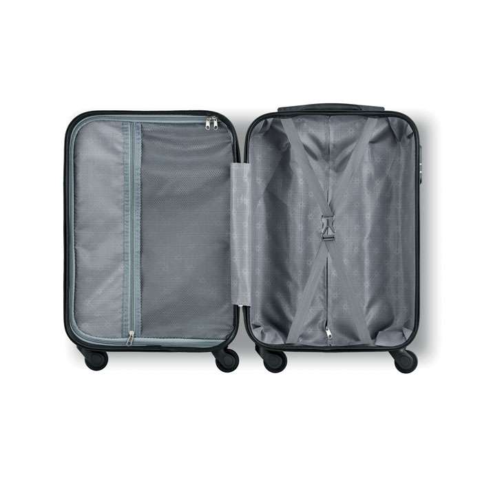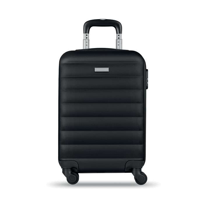“Resväska 20 tums “”hardcase”” trolley i ABS plast. Ett huvudfack och innerfack. Inklusive säkerhetslås. 4 st hjul som snurrar runt egen axel. Väskans mått klarar IATA standard för kabinväska.”