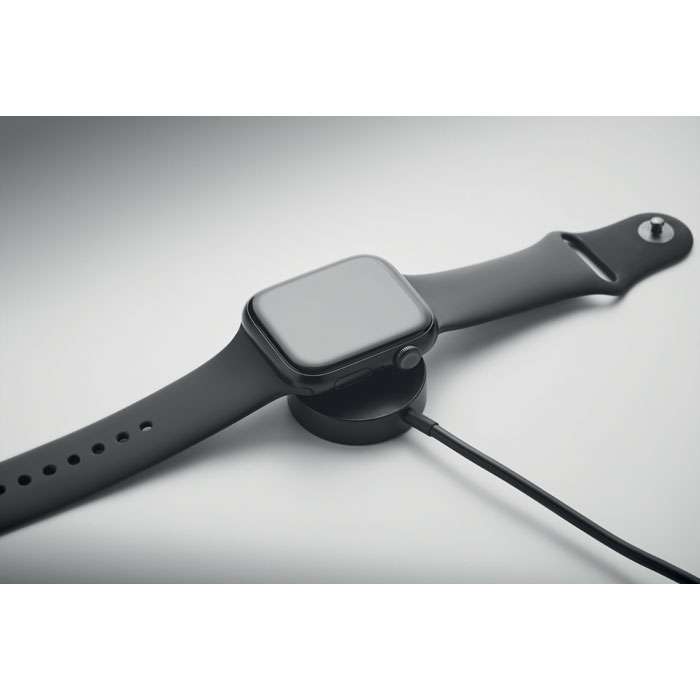 Nyckelring 4 i 1 dataöverförings- och laddningskabel 60W med bambudetalj. Ingång: 2-i-1 Typ-C och Typ-A. Utgång: Titta på laddning (Samsung® och Apple®), typ-C och mikro-B (2 i 1 stift).