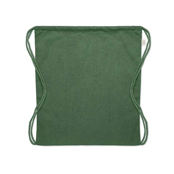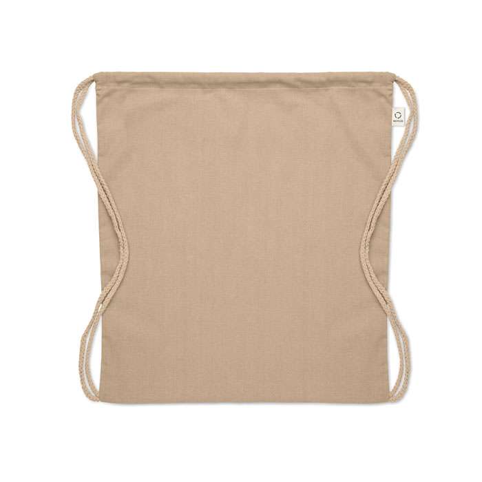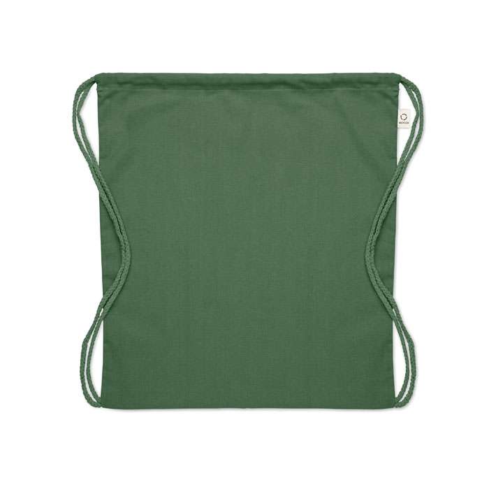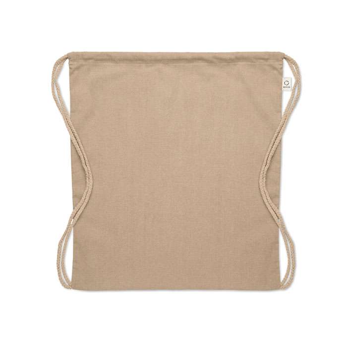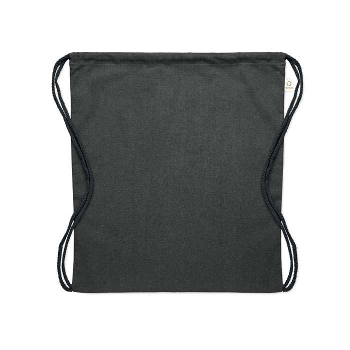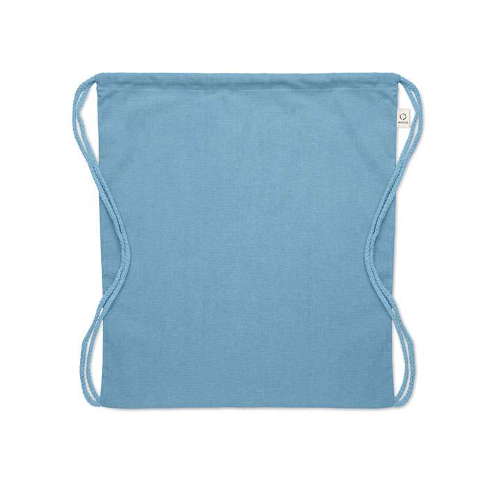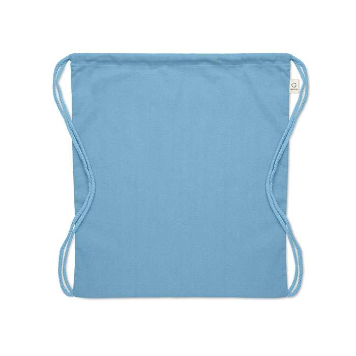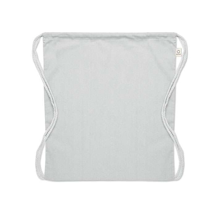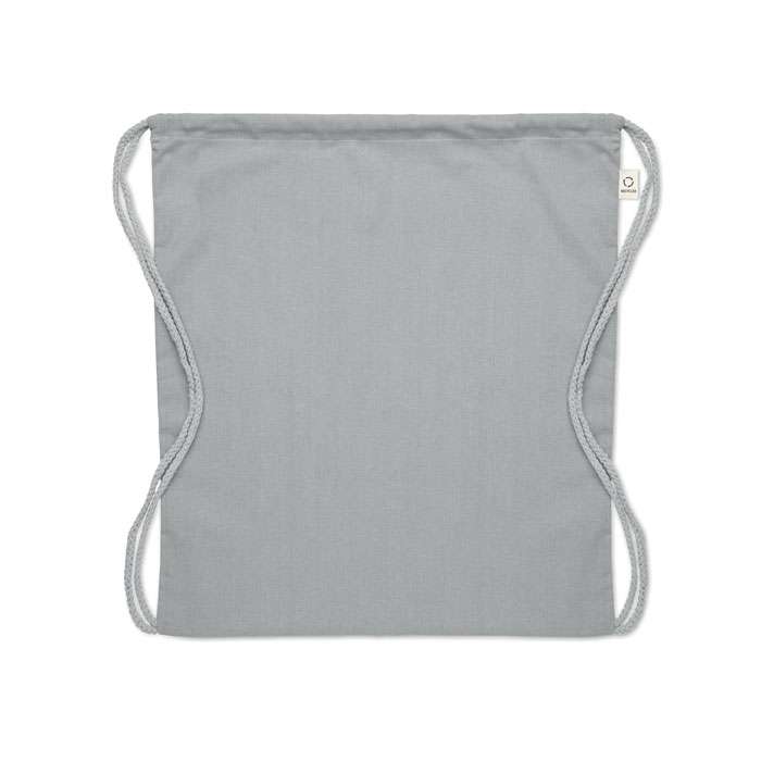 Gymnastikpåse i bomull av återvunna textilier (70 %) och RPET (30 %). 140 gr/m².