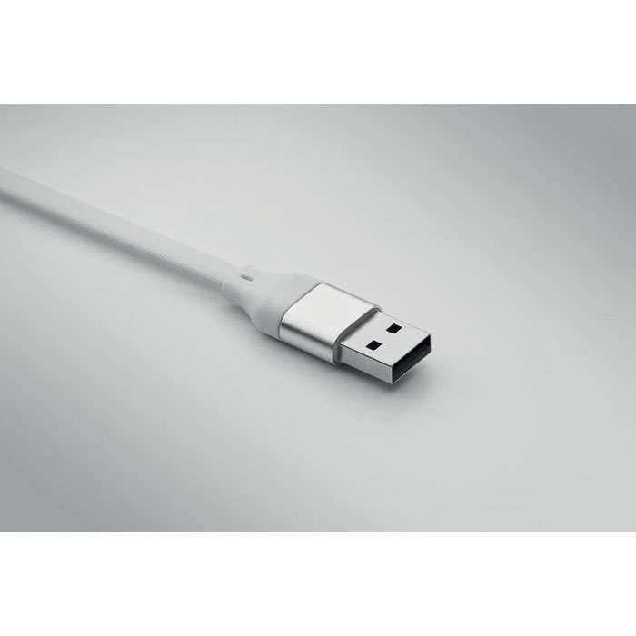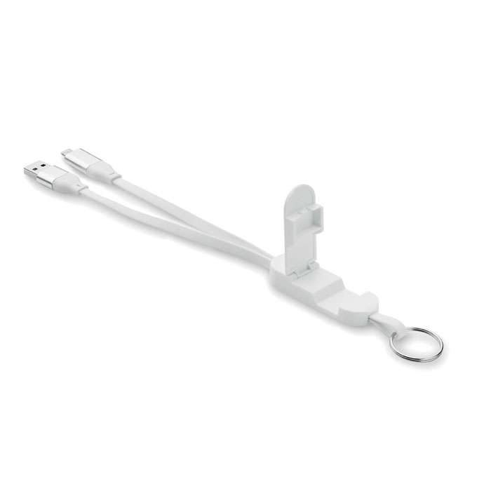 60W-laddkabel i återvunnet ABS-hölje med nyckelring och telefonstativ. Ingång: 2-i-1 Typ-C och Typ-A. Utgång: Typ-C och micro-B (2 i 1 stift). Kabellängd: 26 cm. (ej dataöverföring)