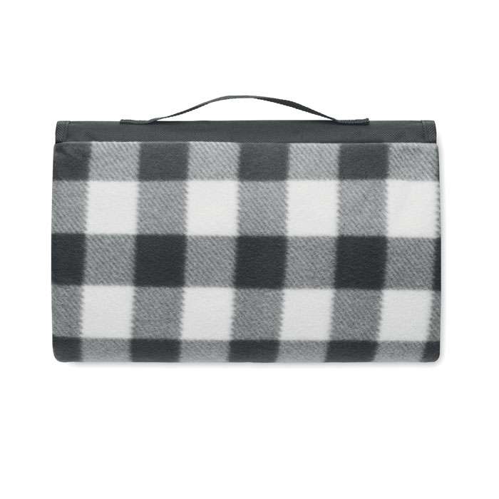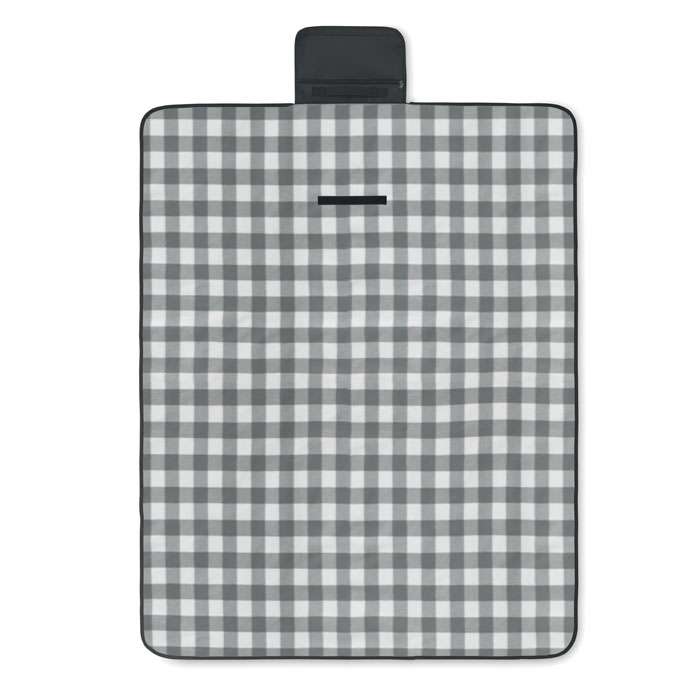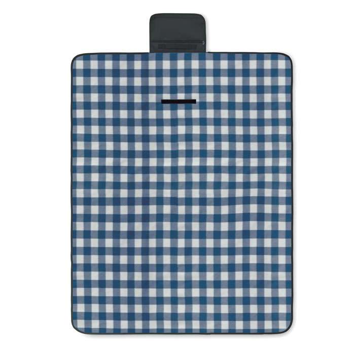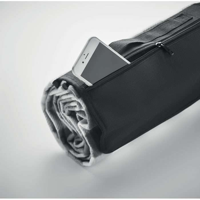 Vikbar RPET 150 gr/m² polarfleece picknickfilt med vattenavvisande belagd PEVA-baksida. Inkluderar en ficka med dragkedja på framsidan och en kort bärrem.