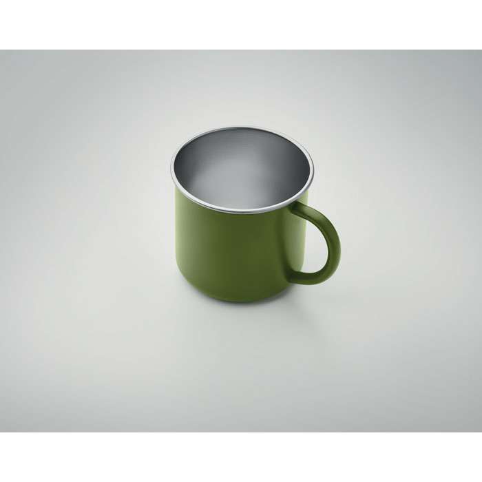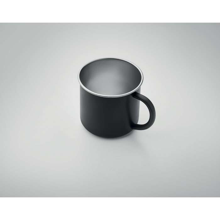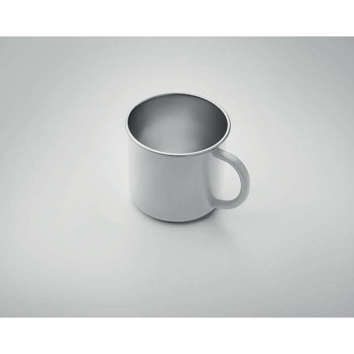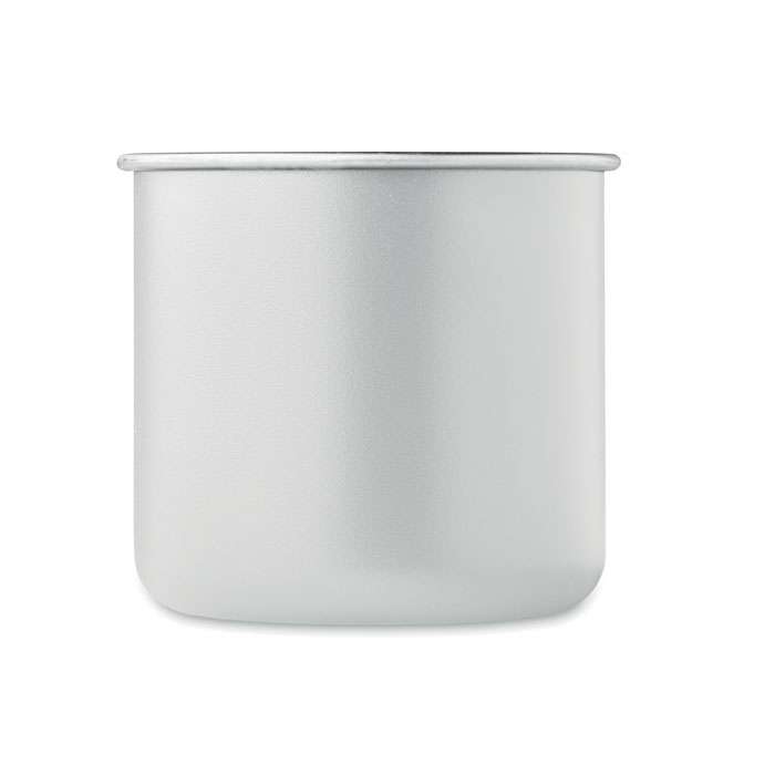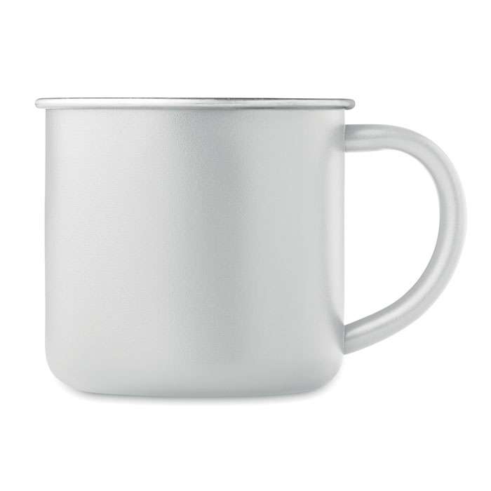 Enkelväggig mugg i återvunnet rostfritt stål (90% återvunnet rostfritt stål och 10% rostfritt stål). Kapacitet: 300 ml.
