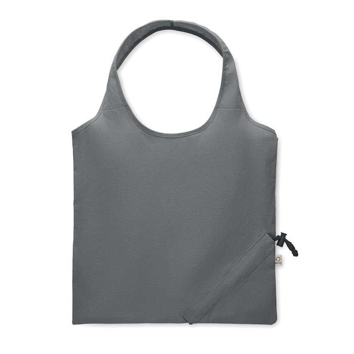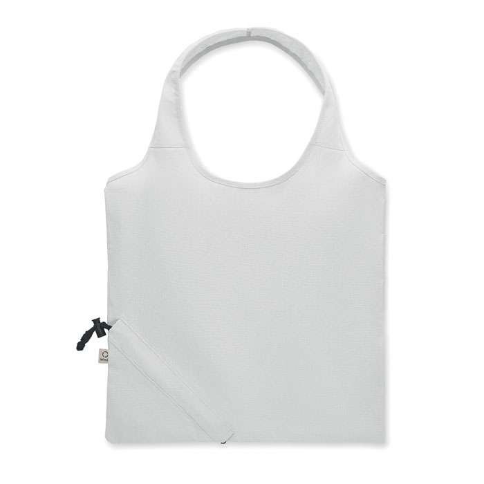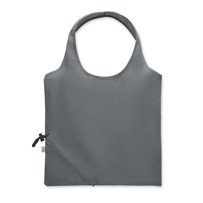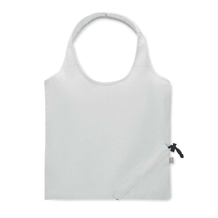 Hopvikbar kasse av återvunnen bomull, melerade färger (70% återvunnen bomull och 30% RPET). 140 gr/m². Produkten kan krympa något efter märkning.