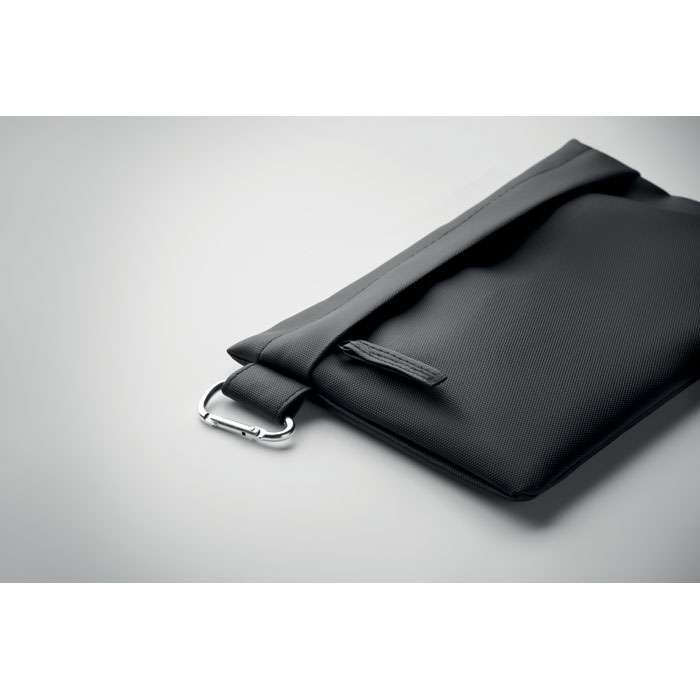 Bärbar förvaringspåse med PU-belagd 600D RPET polyester och stängning med dragkedja. Lämplig för tex datortillbehör, arbetsinstrument m.m.