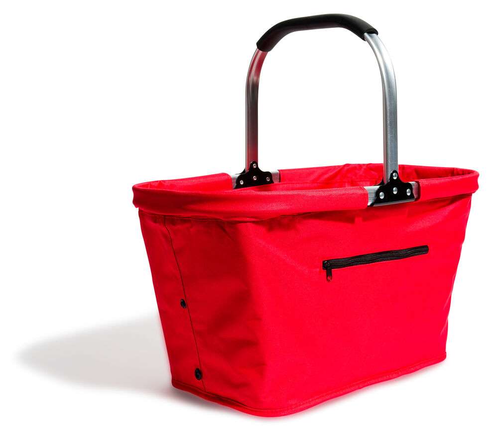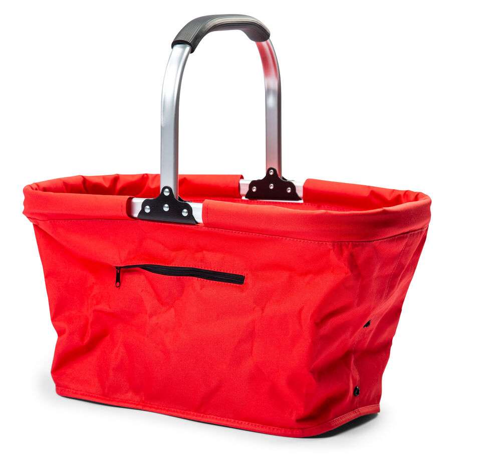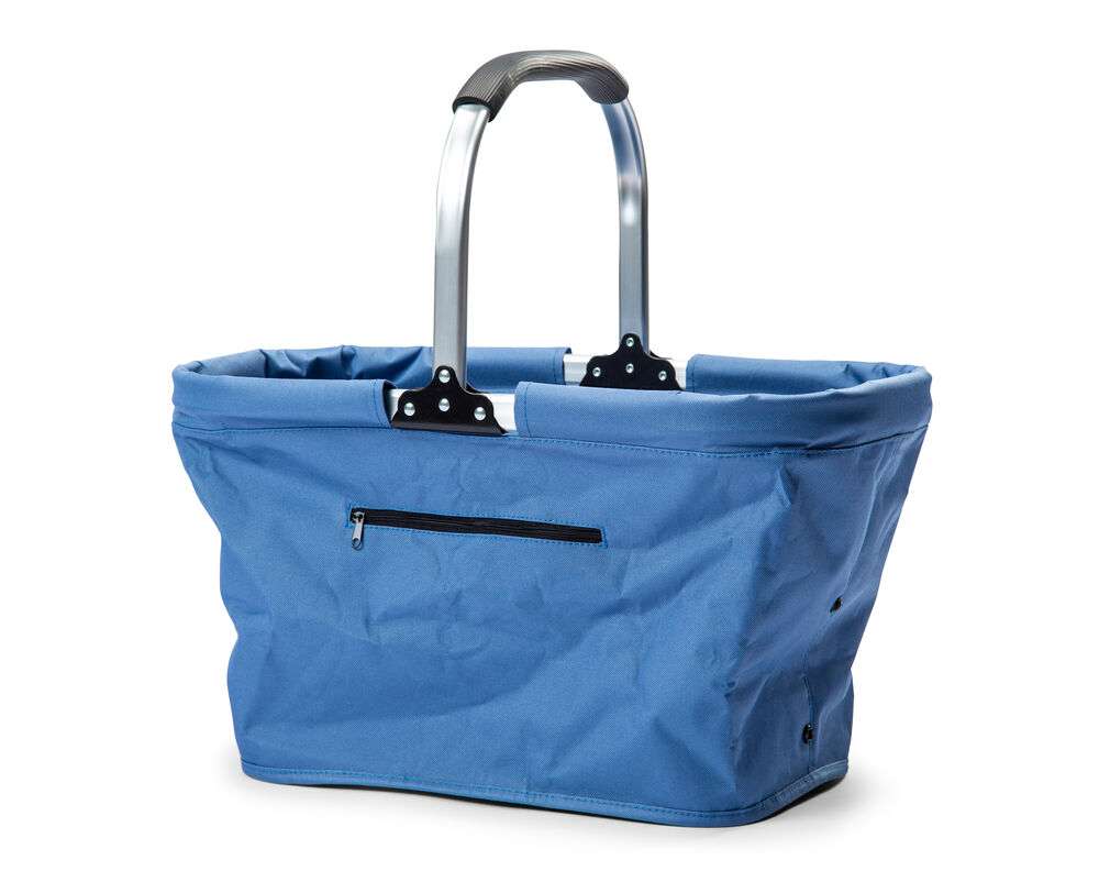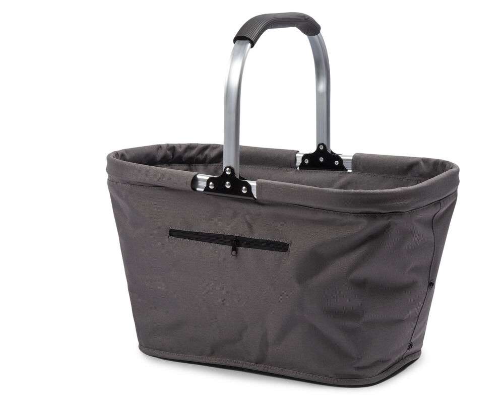 Hopfällbar korg. Fungerar utmärkt som både shopping- och picknickkorg. Väskan är i 600D polyester.