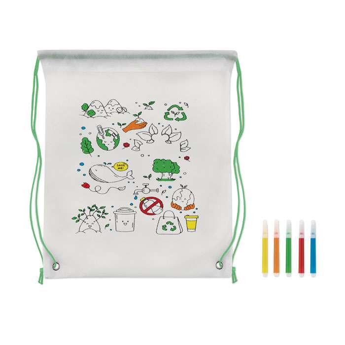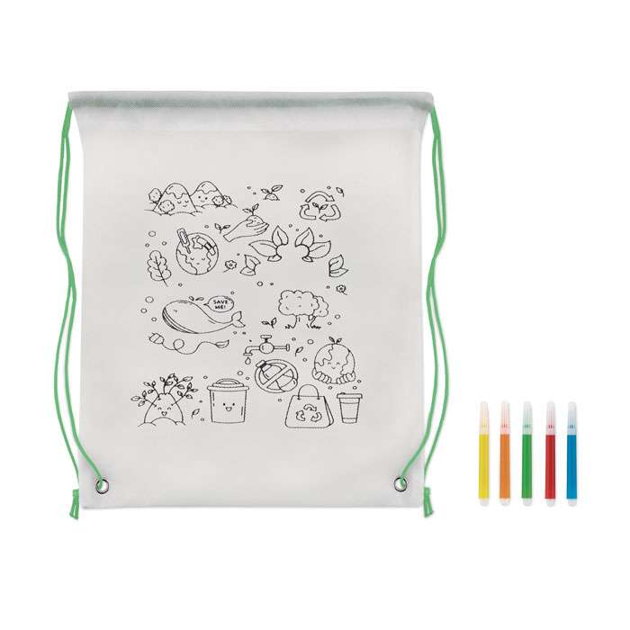 Gympapåse i Non woven med 5 tousch pennor för färgläggning av påsen.