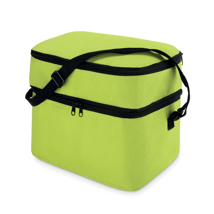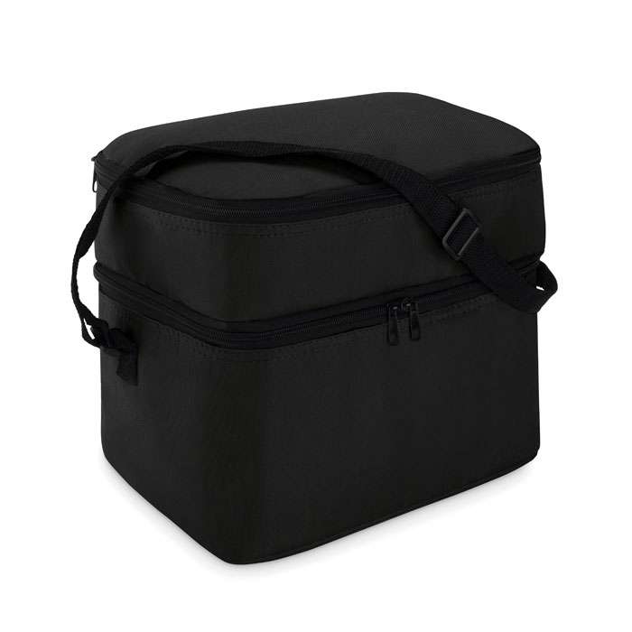 Kylväska med 2 fack med folievadderad insidan. 600D. Justerbar axelrem.