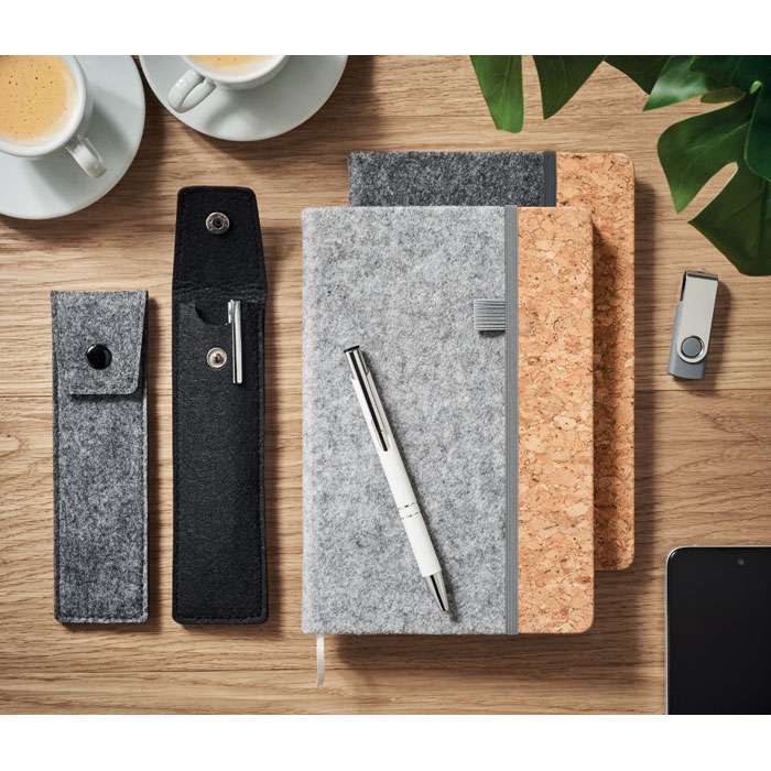 RPET pennfodral i filt (för 2 pennor) med tryckknappsstängning.