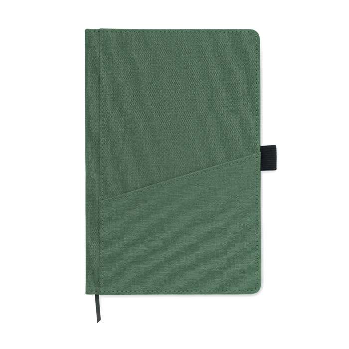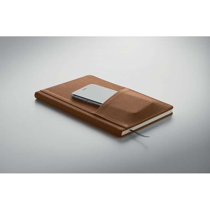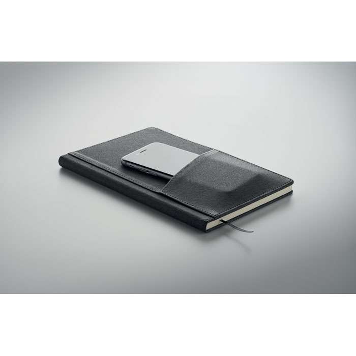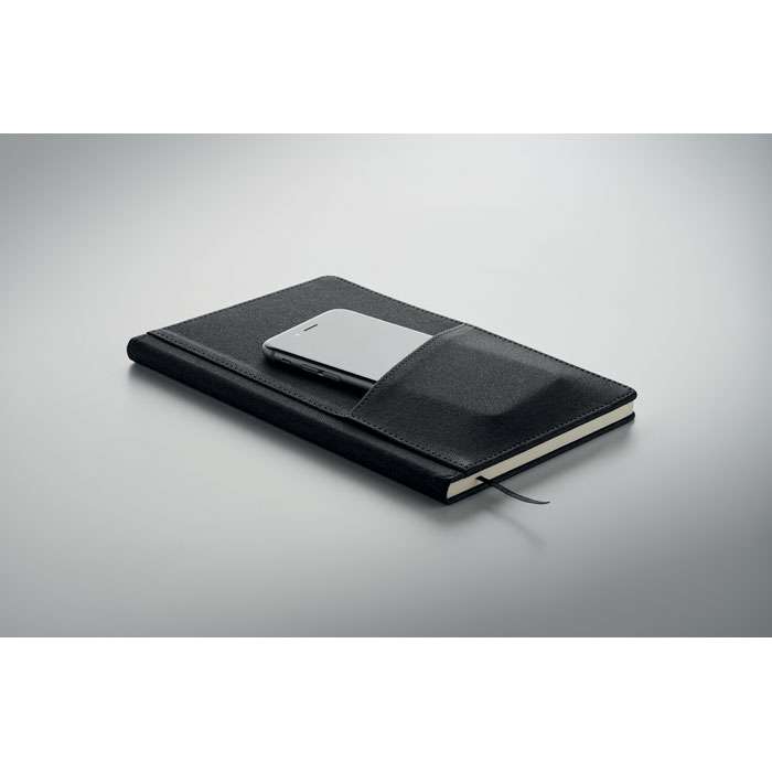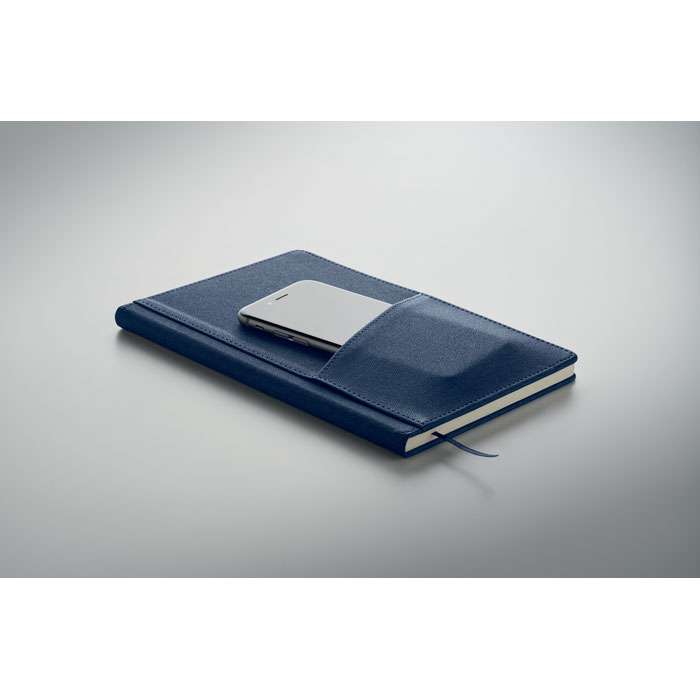 A5 anteckningsbok med hårt PU-omslag och främre telefonficka. Inbunden i kassett. 160 linjerade sidor av återvunnet papper (80 ark). Matchande bokmärke i band. FSC®-certified | FSC MIX CREDIT, P7.1, FSC-C213206