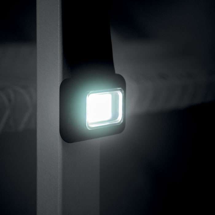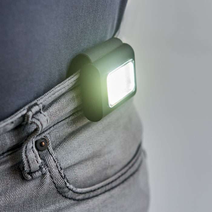 Bärbar COB minificklampa USB 400 mAh uppladdningsbar. Ljusflöde lux 150, 6 ljuslägen. Den har silikonklämma och magnetlås.