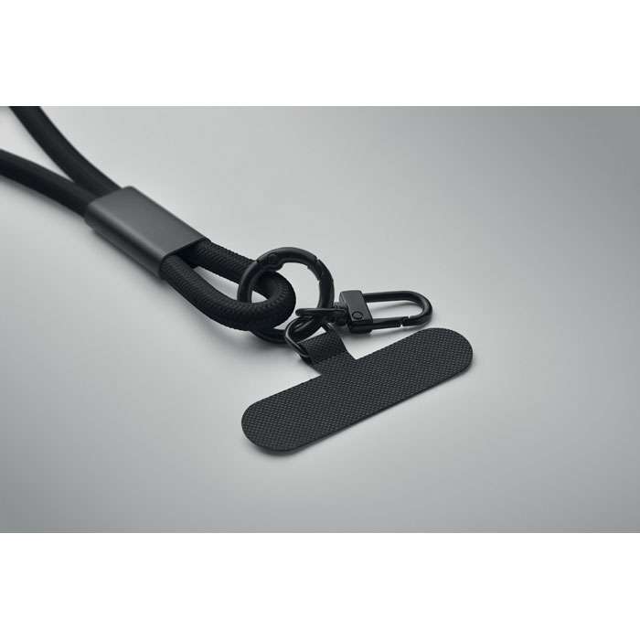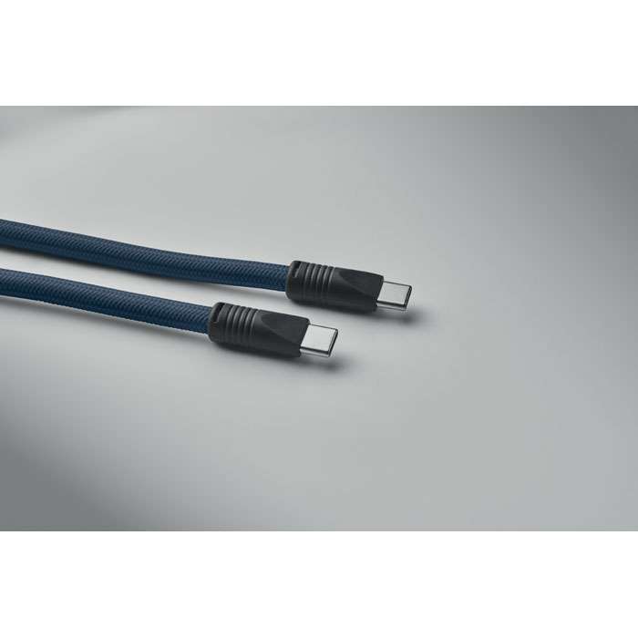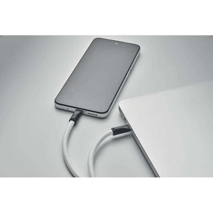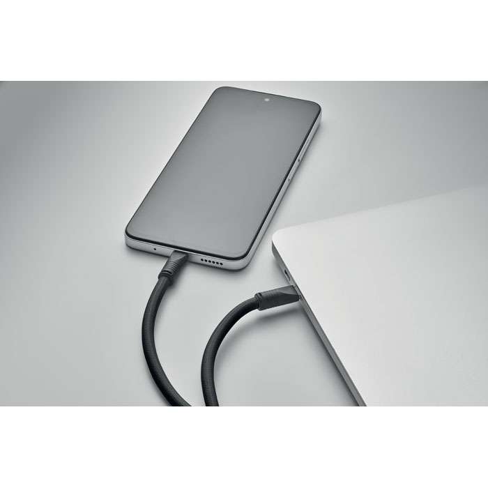 Laddkabel/logoband med 60W laddnings- och dataöverföringskabel typ-C till typ-C i RPET med hållare för telefonsladd och nyckelring.