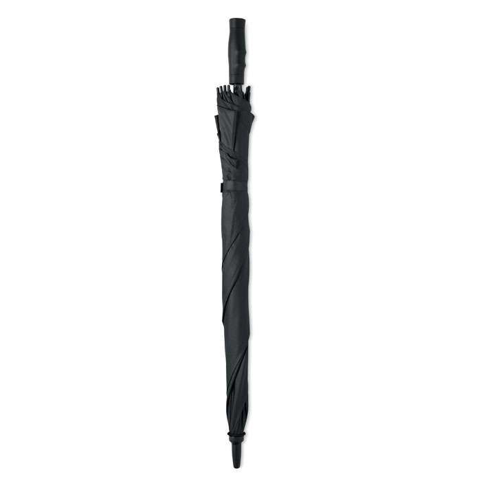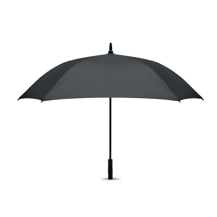 27 tums fyrkantigt automatiskt öppnings/stängningsbart stormsäkert paraply i 190T pongee-material. Handtag i ABS-gummifärg. Skaft och ribbor i glasfiber.
